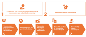 • Opleiding van medewerkers: Met als doel dat zij betalingsproblemen sneller signaleren en klanten mogelijk beter kunnen bedienen en in contact kunnen brengen met de juiste ondersteuning