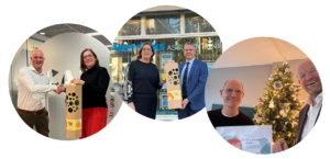 De winnaars? Bas van Gent (links), van ACAM. Hij deed mee op aanraden van onze collega en acceptant Bekir. Ook Harald Hendriks (midden) van Hendriks Assurantiën viel in de prijzen en kreeg bezoek van directievoorzitter Carola Wijkamp-Hermsen.
